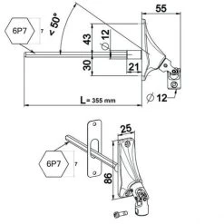 Sortie De Caisson 45° Sous Coffre Pour Manivelle Ø12mm Tige Carrée 8mm