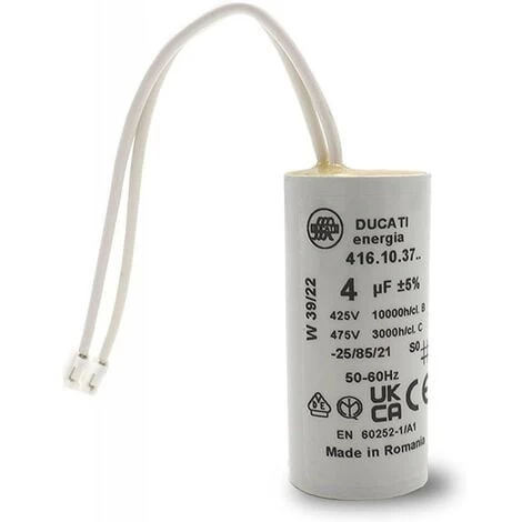 En achetant ce produit, vous obtiendrez un condensateur 4 uF (microfarad) de tolérance 5% – 425V à 475VC pour une utilisation de 10 000 heures estimées. Pour démarrage de moteurs électrique (sans cosses). Avec connecteurs pour moteur Bubendorff