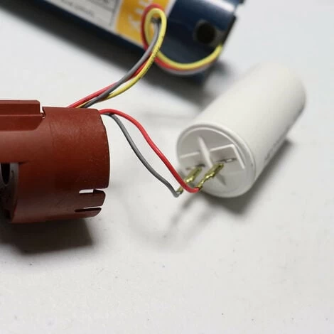 Remplacez rapidement votre condensateur en démontant votre moteur, il suffit de faire sauter la goupille au niveau de la tête, faire glisser le cache, puis dévisser à l’aide d’un tournevis ou un embout torx, sortir la partie supérieure contenant le condensateur, et le sortir des broches, connectez les nouveaux condensateurs au connecteur (ou cosse) et le tour est joué ! Effectuez la manipulation courant coupé ou fils débranchés