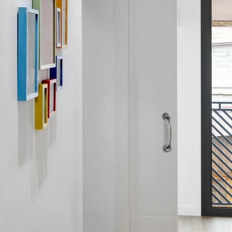 - Poignée de porte coulissante avec rosace ronde de diamètre 50mm.