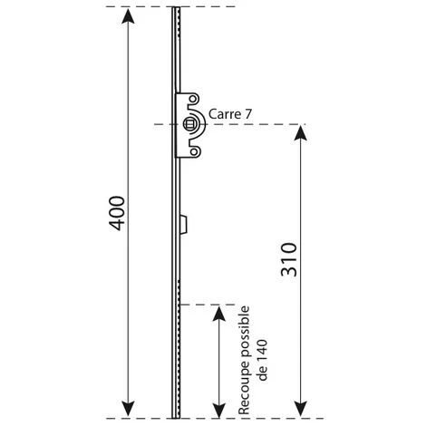 Crémone pour fenêtre ouvrant à la française. Crémone réversible droite ou gauche. Fouillot Carré de 7 mm. Tétière de 16 mm.Le boitier de serrure crémone à encaster Unijet, fabriqué en acier FerGuard®, est conçu pour verrouiller efficacement vos fenêtres en bois ou PVC à ouverture française. Cette serrure de fenêtre Thirard s’installe facilement à droite comme à gauche et offre un verrouillage sécurisé grâce à son verrouillage à multipoints de condamnation. Cette serrure crémone de fenêtre dispose d’une têtière à bouts carrés et est disponible en différentes versions : avec un axe à 7,5mm ou 15mm et une hauteur de 40cm ou 1,28m.