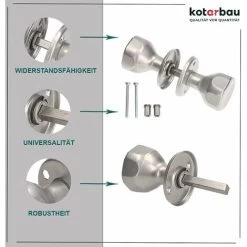 Emuca Poignées Twist De Porte Intérieur, Avec Rosace D.50 Mm, Aluminium, Nickel Satiné, 1 Set.