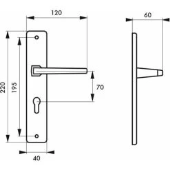poignée de porte Mazarine noir cond acier/zamak noir sur plaque avec condamnation.Carré de 7mm et vis pour porte de 38 à 44 mm.Entraxe 195MM