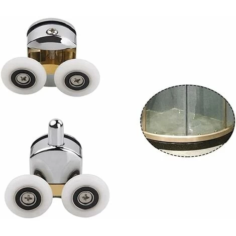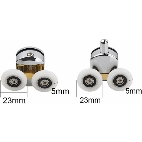 - Rouleaux de porte de douche : 4 rouleaux de 23 mm (2 rouleaux supérieurs, 2 rouleaux inférieurs). Installé en haut et en bas de la porte de douche.