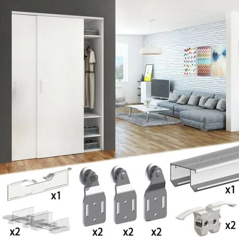 Ce kit complet pour 3 portes coulissantes comprend un rail double en aluminium et tous les accessoires pour installer facilement vos portes coulissantes !